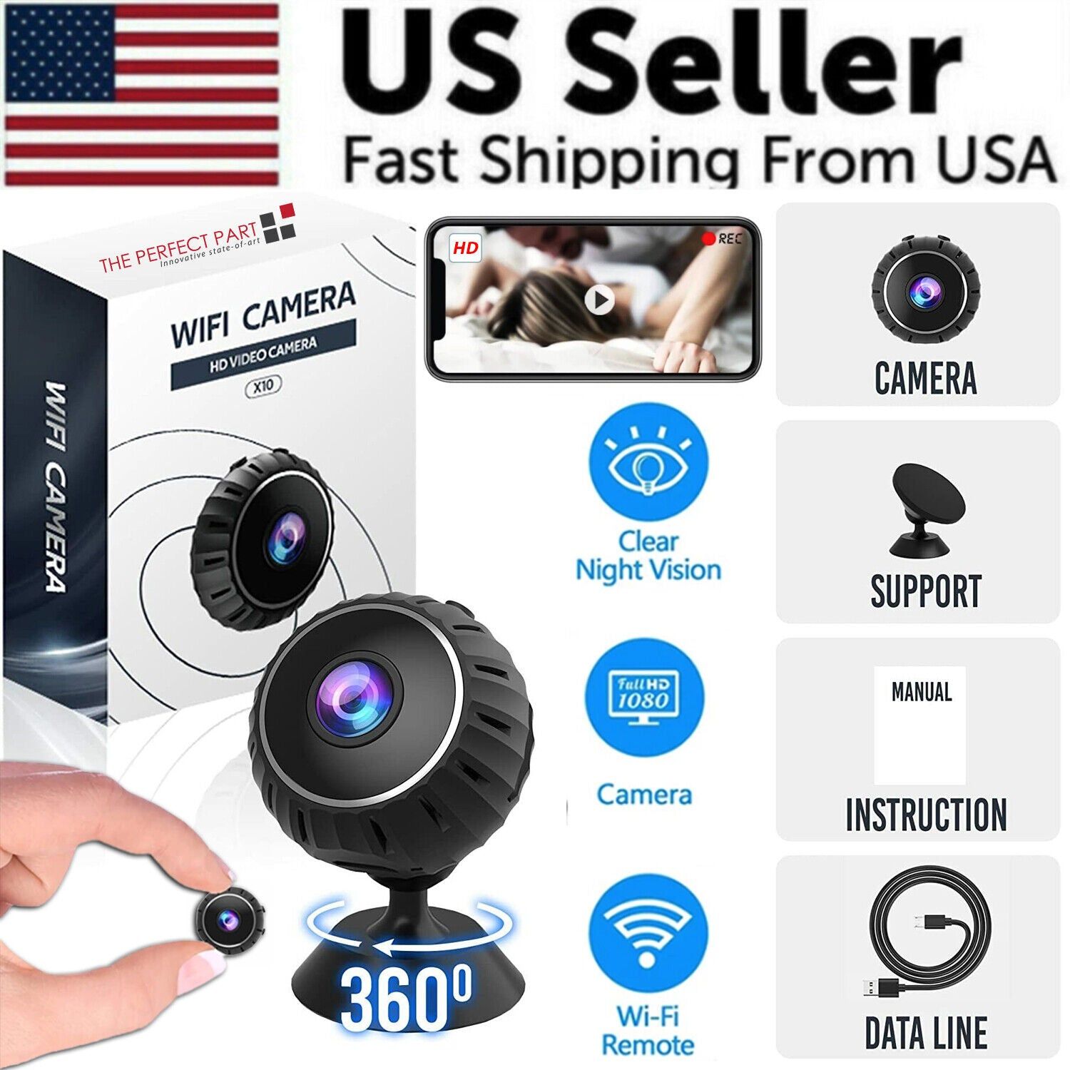 • [All in One Wireless Hidden Spy Camera] The camera is quite small but it comes with all useful features you need for a WiFi Mini camera: 150 Wide Angle, Built-in Magnet, 1080P Live Video, Motion Detection Push Alerts, No-Glow IR Night Vision, Recording while Charging, Playback/Snapshot/Record Remotely, iOS and Android Compatible, Live Stream from Anywhere, SD Card Recording, Free App, One App Multiple Cameras, One Camera Multiple Users and more.