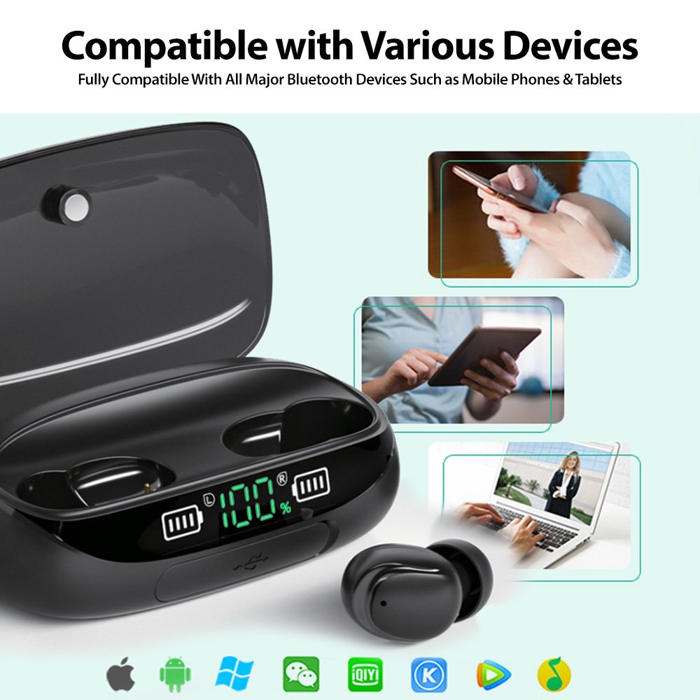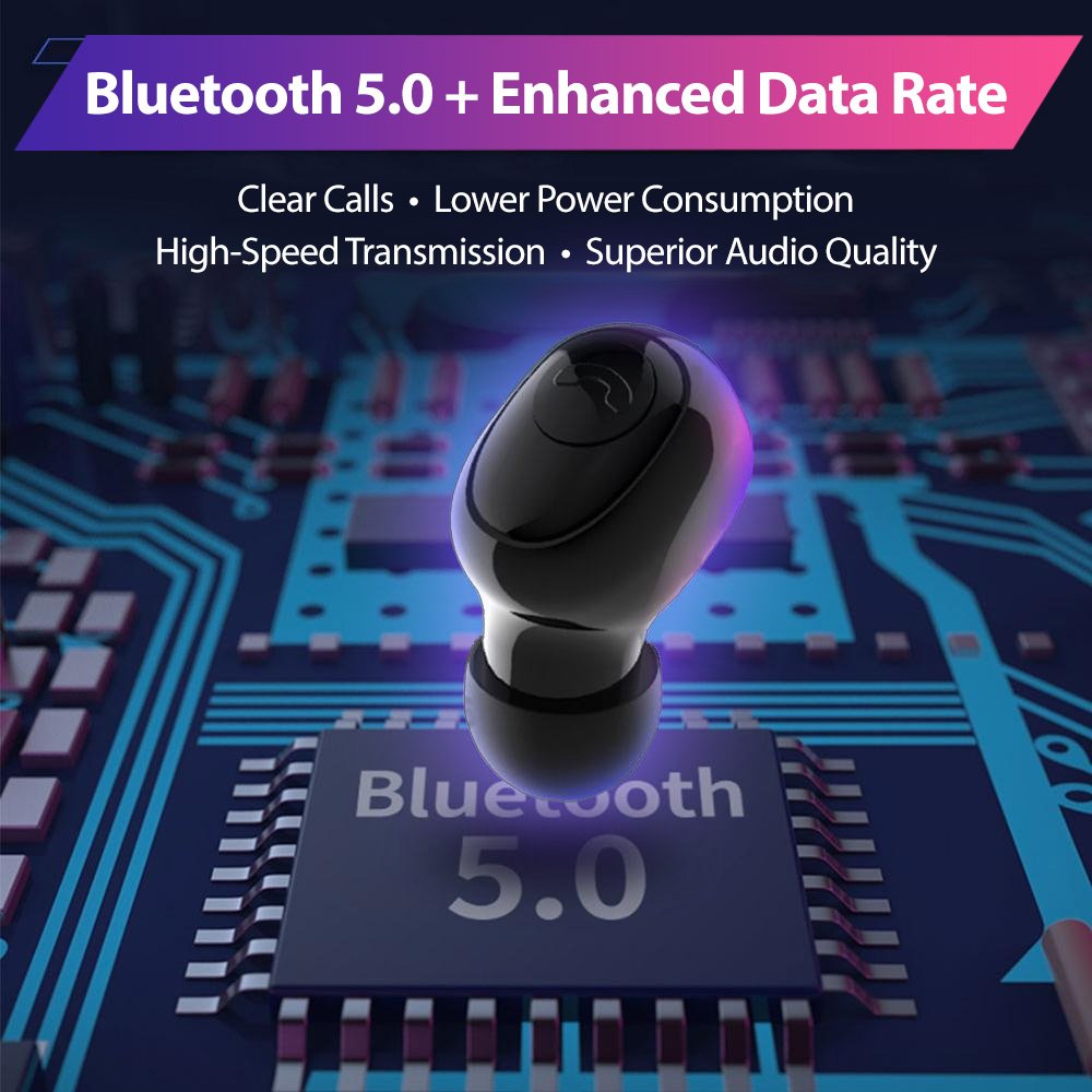 • Extended Runtime - Wireless earphones with a built-in 2000mAh rechargeable battery charging case allow 3-5 hours of runtime on a single charge.