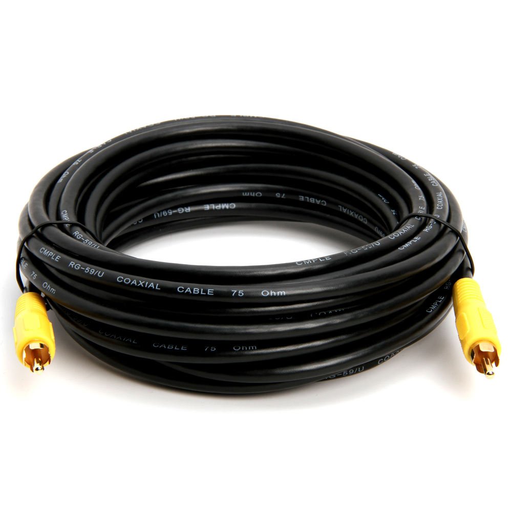 Cmple - Premium S/PDIF RCA Male to RCA Male for Home Theater - 25 Feet Easy connection: Just insert each end into its respective port on a compatible device, so easy. The cable works with any devices that have an RCA port,and it accommodates S/PDIF (Sony/Philips Digital Interface Format), digital, and composite video interfaces as well. Connectivity Cmple Digital Audio Coaxial Cable allows you to connect your Blu-ray/DVD player, HDTV, media player, set-top box, or any other audio device witha coaxial audio port to your audio processor, amplifier, audio mixer, sampler, synthesizer, speakers, or subwoofer through the S/PDIF interface. Color Coding The connector contains a very distinguishable yellow base to help guide users to the correct port. Most digital audio ports are colored yellow to be easilyrecognized, as devices increasingly have more input ports. 24K Gold Plated Connectors Premium quality 24k gold plated connectors which is anti-oxidation and anti-corrosion. Widely used for subwoofer, tablets, home theater, HI-Fi system,HDTV, DVD player, set-top box. Specifications: Connectors: male RCA to male RCA Molded gold-plated contacts for high performance Double Shielded to prevent noise and distortion Yellow connector matches connections on devices 75 Ohm Low-Loss RG-59/U coaxial cable AWG22 solid copper/CCS center conductor Color: Black Length: 25 FT This Digital Coax Cable is made from premium quality RG-59/U with double shielding to prevent signal degradation caused by EMI and RFI interference.This cable is ideal for conducting S/PDIF digital audio signals and other high-bandwidth content, but it can also be used for composite video and other linelevel RCA signals.