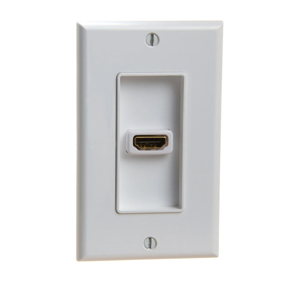 HDMI Wall Plate With 4 Inch Extension Cable Continual improvements in consumer electronics technology make it inevitable: as soon as you buy the “latest and greatest” high-definition TV, audio receiver or component, an innovative new product hits the market which makes your sparkling new acquisition yesterday’s news. We’ve seen it on the projection/plasma/LCD/HD/3D/4K/Ultra HD television merry go-round, and we’ve seen it in VHS/S-VHS/DVD/Blu-Ray technologies, just to name two examples. There’s one virtual certainty, though; most industry experts believe that the new standard for home theater video signal transmission, HDMI, isn’t going anywhere soon - particularly since the latest versions of HDMI are all backward compatible. That’s good news for consumers who hate continually replacing the cables connecting their equipment, and it means that you can safely think about setting up your home theater with in-wall cabling which permanently connects to HDMI jacks conveniently installed in wall plates. That way you can upgrade your equipment whenever you’d like, and changing the connections is as simple as unplugging one cable and plugging in the other. Here’s the best way to accomplish the task: after you run the in-wall cabling, just get a few of our attractive Cmple HDMI wall plates which will easily install into your wall, right near your HDTV, cable or satellite box, monitor or other HDMI-equipped component. They’ll add professionalism to the look of your home theater, living or family room while freeing you from the mess of cables which usually accompany a video installation. When we say these wall plates are simple to install and use, we mean it. They’re single-gang plates which fit into standard single-gang junction boxes or plaster rings; there’s a high-quality female HDMI connector on the front, and a four-inch HDMI female coupler cable (also made with our trademark Cmple quality) behind the plate, for an easy fit to your in-wall cable without requiring bare-wire connections or soldering. These ship with white plates which will blend in perfectly with almost any wall, wallpaper or décor, but are also compatible with Leviton Decora brand wall plates, so you can easily swap out the white plate for another one which suits your fancy. These Cmple wall plates have HDMI 1.3 connectors but are compatible with older versions of HDMI, so you can use them to hook up older TVs and monitors - and they’ll still be just right when you buy a new 4K, Ultra-HD or 3D television. They’ll serve you for many years to come; the first time you just plug a new component into the wall, you’ll be thrilled you made the decision to install permanent wiring. Checking out the specs of the Cmple HDMI wall plate with 4-inch extension cable: HDMI 1.3, backward compatible HDMI single port connections front and back, with four-inch extension cable in back Single-gang wall plate Fits into standard single-gang junction box or plaster ring Attractive Leviton Decora wall plate Color: white A major concern when installing in-wall wiring for any electronic equipment is lifespan - not of the cabling, but of the connection standard. But HDMI is here to stay, and this Cmple HDMI wall plate is almost certain to serve you for many, many years.