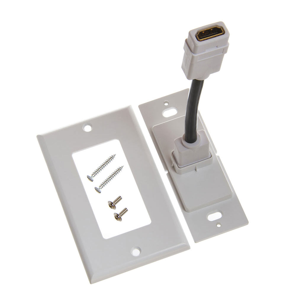 Home > Cmple - HDMI Wall Plate Single-Gang White Wall Plate 4” Rear Extension Cable,1-Port HDMI Insert (4K UHD, ARC, and Ethernet Pass-Thru Support)