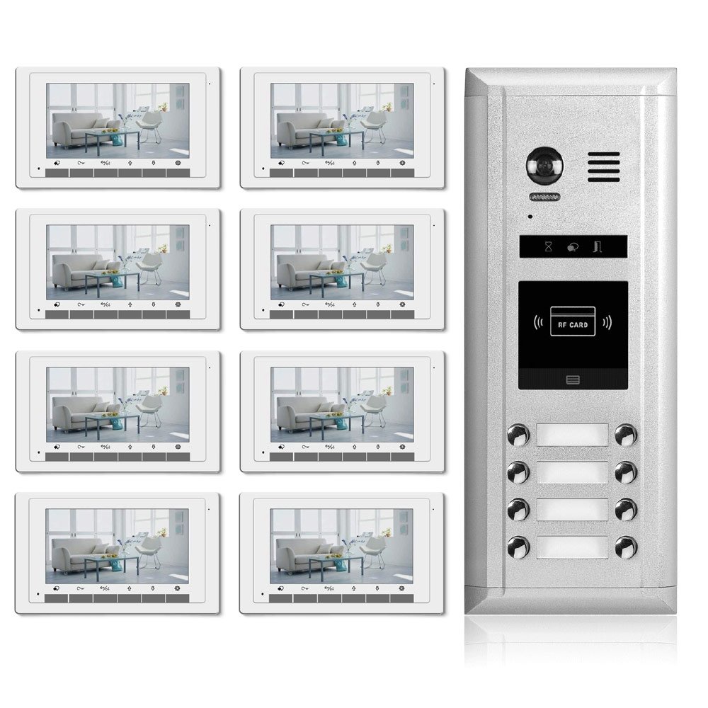 Intercom System for Building | 8 Monitors 7" | 2 Wire 8 Apartment Doorbell | Camera and Door Release - DK1781S/ID