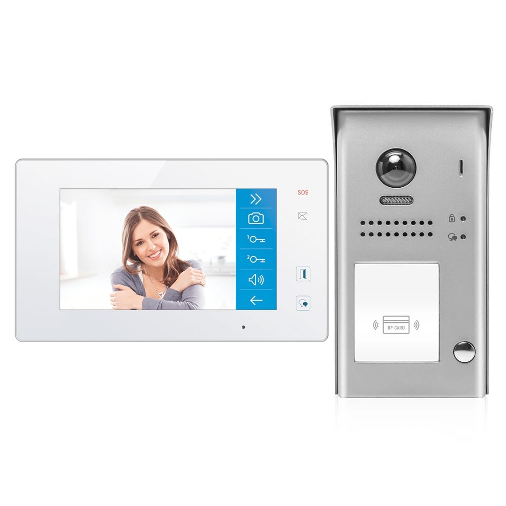 One Apartment Wi-Fi Video Intercom System with One 7inch Touch Screen MonitorThis 2-Wire front door video intercom entry system can boost safety within your home by creating a barrier between you and whoever is outside. The front door intercom system offers convenience, as well as an added layer of security. After all, it may be the case that not every visitor is a welcome one.This system features an attractive 7inch full-color touch screen flat-panel monitor, enabling the monitoring of the 170-degree camera mounted on the exterior weatherproof door panel. The outdoor block incorporates a keyfob reader so that residents can open the door lock either with a keyfob from the outside. The user-friendly interface, Wi-Fi connection, SD card slot, and other indoor monitor amazing features give wide functionality to your setup.Outdoor Panel Features:607FE models have a 170° wide-angle cameraBuilt-in card/fob reader for unlocking the entry1 Button ModelProximity access controlEquipped with terminals to add a motion detector for activating or to turn on lightAuto-sensing LED light for clear night visionZinc alloy housing, with electroplating and polishing treatmentSurface mounting with rain shieldWeather-resistant - IP54 ratedLarge back-lit nameplateIndicator lights during unlocking and talkIndoor Monitor Features:Surface-mounted 7inch TFT Color Touch ScreenSimple and intuitive touch screen menuAllow digital pan, tilt, and zoomHands-free operationSupports multiple monitors in each apartmentIntercom options: Monitor to Monitor, Guard Station call, and apartment-wide broadcastRecord snapshot or video from entry panel or other cameras in monitor memory (requires a micro SC card)Dimensions: 5.20 H x 8.90 W x 0.70 D (inch)Applications from one to 256 apartmentsLow profile surface mounted station Package DX4711M/ID - Includes:1 x 7″ Monitor (DX-47) Wi-Fi Touch Screen1 x 1 Apartment Entry Panel(DT-607FE/ID/S1/RH)1 x UL Approved Power Supply(DR-30-24)1 x Power Separator (DT-DPS)1 x 3A Relay (DS-ERL)1 x DIN Rail1 x AC Cord5 x Keyfob (HL-3)