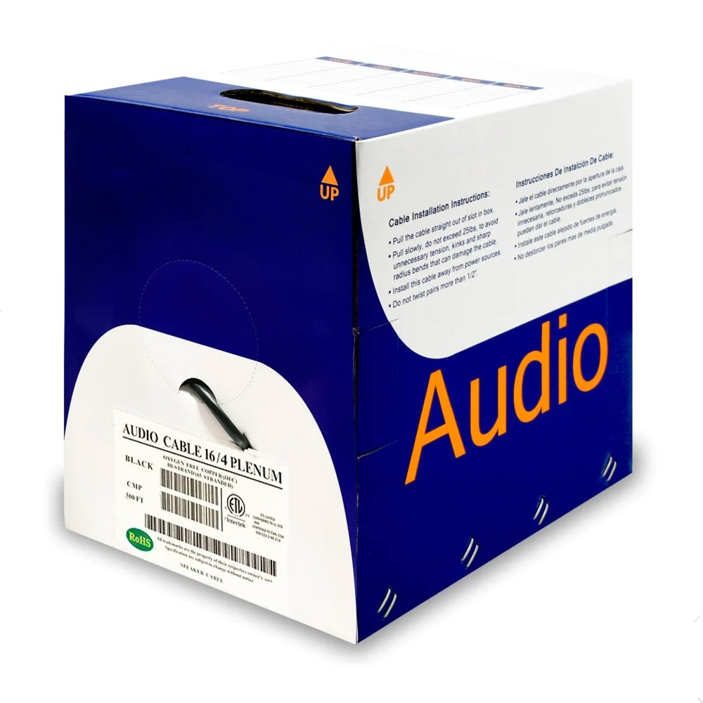 16AWG Four-Conductor Plenum CMP Rated Loud Speaker Cable - 500 Feet (For Plenum Space Installation) Bare CooperIntroducing our 16AWG 4-Conductor Plenum Speaker Wire - the ultimate solution for your audio needs. Unveil the audio enthusiast within you with our remarkable speaker cable. This cable is your gateway to unparalleled sound quality, versatile applications, and utmost safety in both residential and commercial settings. Designed for professional-grade audio systems and plenum spaces, this cable features OFC (Oxygen-Free Copper) conductors, a Plenum (CMP) rating, and a generous length of 500 feet.Specifications: Wire Gauge: 16AWG Conductors: 4 Jacket Type: Plenum (CMP) Cable Length: 500 feet (152.4 meters) Material: Oxygen-Free Copper (OFC) Insulation Material: Remguard Plenum Polymer Jacket Material: Remguard Plenum Polymer Insulation Color: Black / Red / Green / White Outer Jacket Color: Black Package: REELEX II 500 feet is a lot of speaker cable. But you’d be surprised how much cabling you need for a speaker system covering an entire home. Its durability, compliance with safety standards, and exceptional audio performance make it an excellent investment for your audio needs. Elevate your audio experience, confidently embracing a world of unrivaled sound quality, versatility, and reliability.