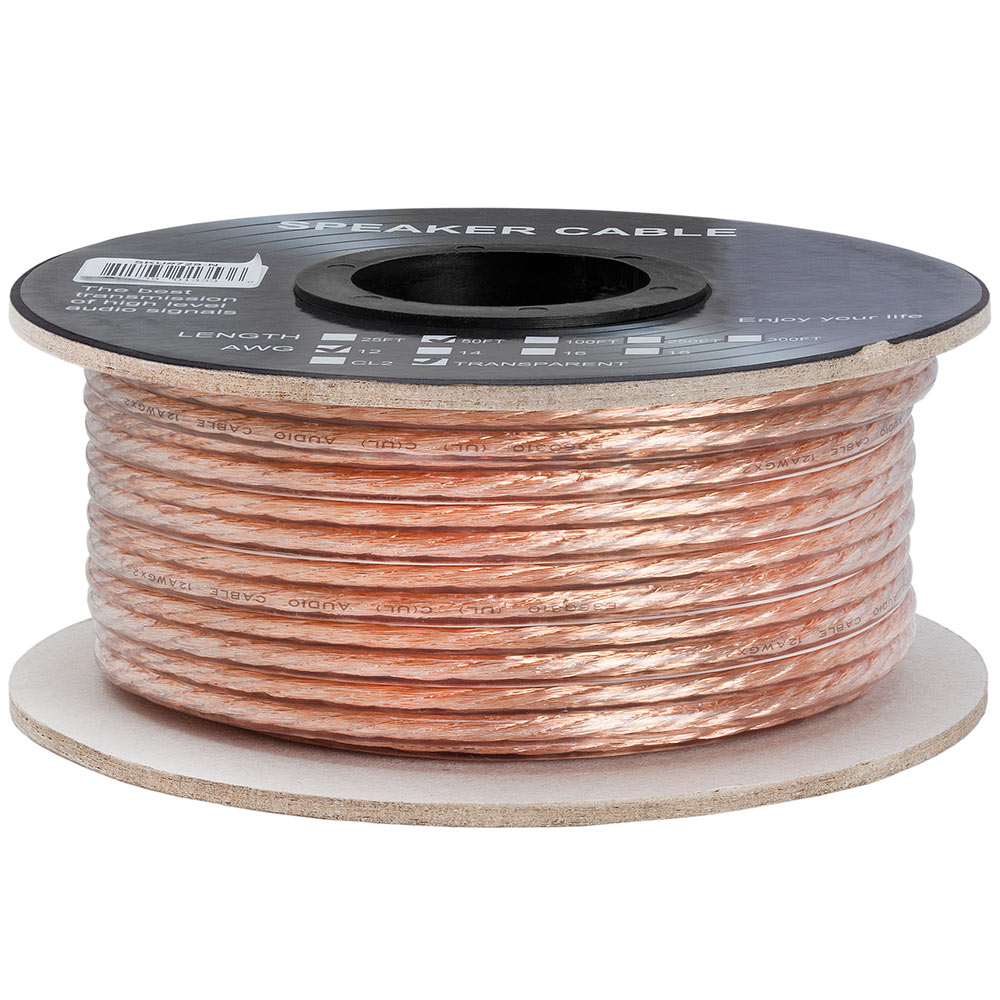 Speaker Wire 50ft 12 Gauge 2-Conductor | Clear Jacket Audio Cable
