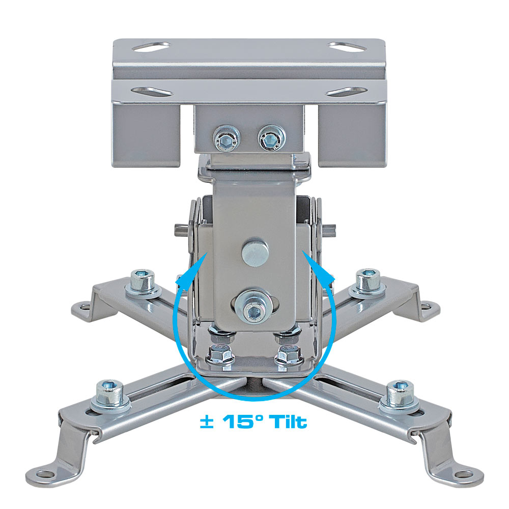 Universal Projector Ceiling Mount (Max 44Lbs) - Silver The ceiling mount has a maximum load weight limit of 20kg or 44lb. This means that hanging anything heavier than 44lb/20kg is not recommended and not safe. Tilting option: This bracket features tilting option. It allows to tilt your projector 15 degree up and down, which you may find very convenient if you need to change the angle of your projector. Features & Specifications: Aluminum ceiling projector brackets -15 degree +15 degree continuous adjustable tilt Height adjustable, extend from 16.9inch-25.6inch (43-65cm) With cable management Max load capacity: 20kg/44lbs Installation instructions included Color: Silver This bracket is not only handy, but also safe. It has been tested for the presence of Lead, Cadmium, Mercury, Hexavalent chromium, Polybrominated biphenyls, and Polybrominated diphenyl ethers, which are hazardous for the human thehealth if used in above normal amount.