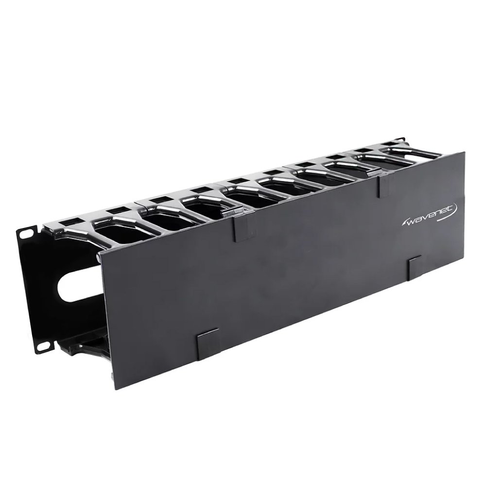 Home > Wavenet – 3U 19" Single‐Sided Horizontal Cable Manager - Plastic Finger Duct with Cover for 2‐Post and 4‐Post Server Racks, Metal – Black