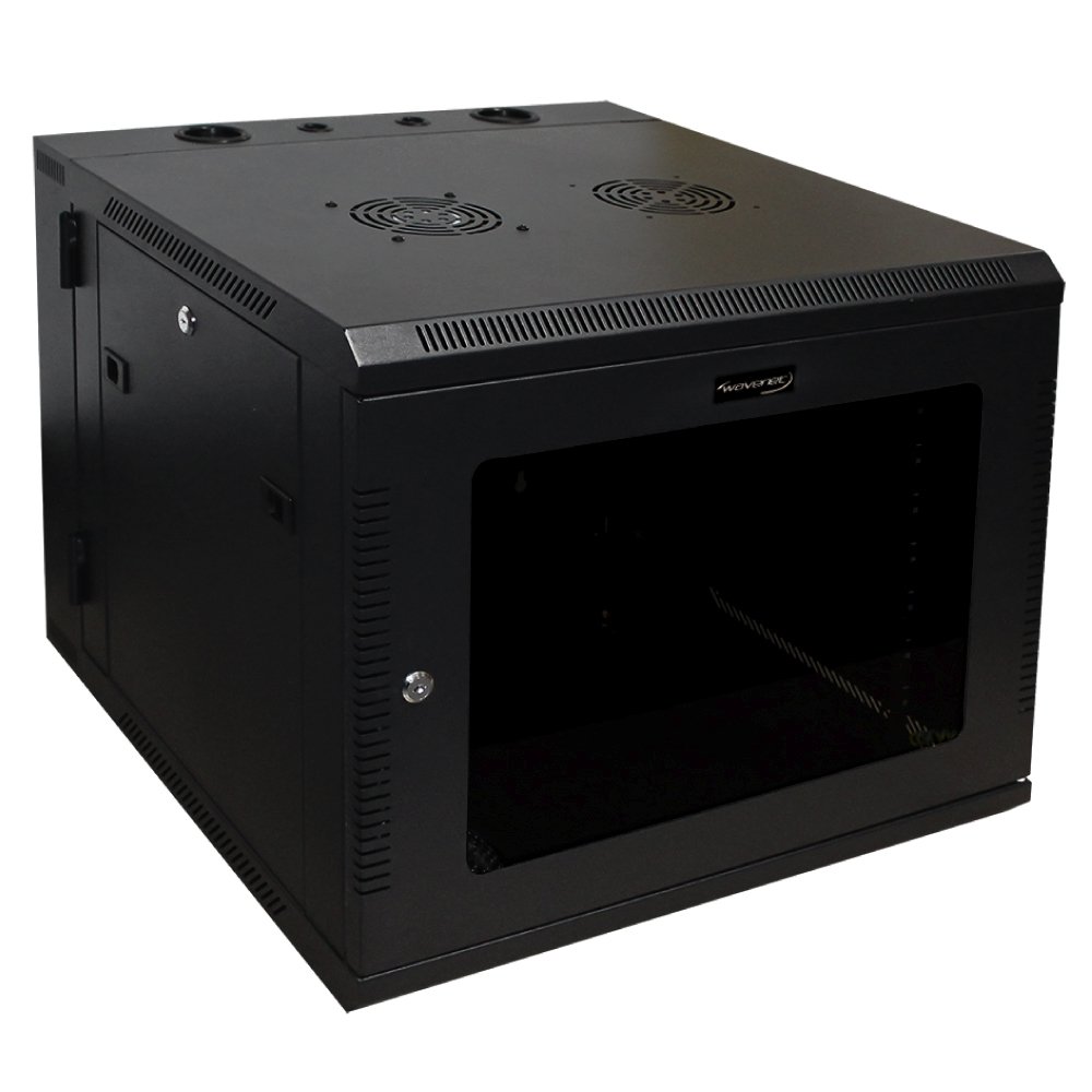 Home > Wavenet - 9U Server Wall Mount Cabinet, 24-inch Depth, Swing-Out Network Enclosure with Locking Tempered Glass Door - Black