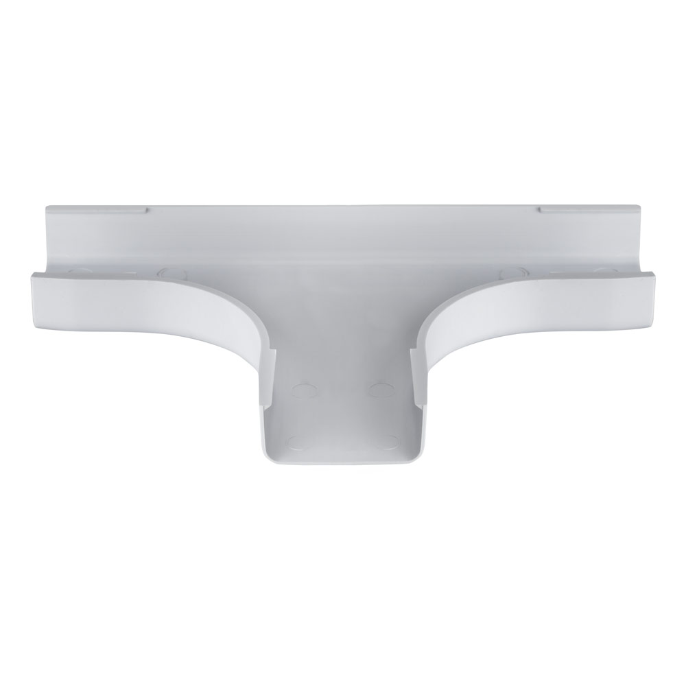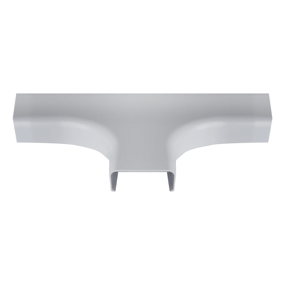 Wire Trak 3 Way Tee for Raceway PVC White, 1 1/2inch W x 3/4inch H Features: Constructed of UL94VO Flame Retardant PVC Built with UV Stabilizer to prevent color fading Latex paintable surface Category 5 Bend Radius Compliant Color: white