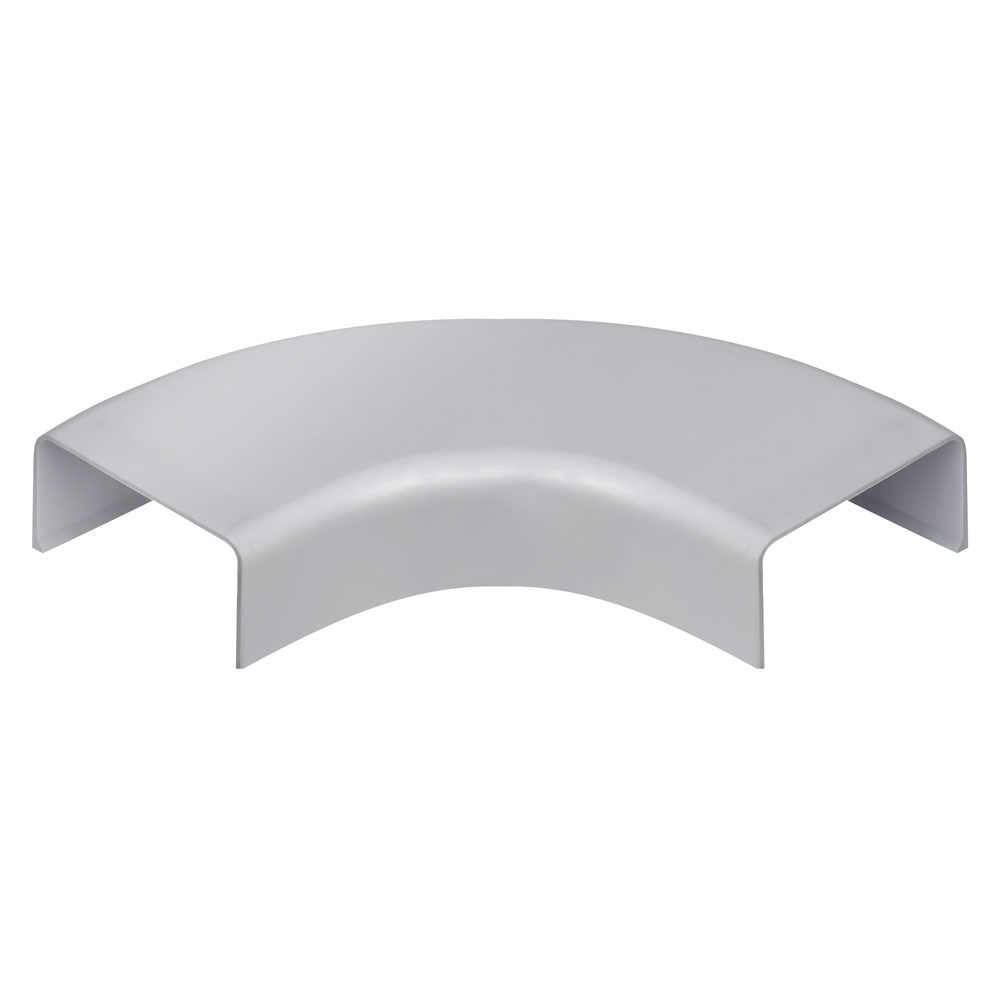 Wire Trak Flat Elbowr for Raceway PVC White, 1 1/2inch W x 3/4inch H Features: Constructed of UL94VO Flame Retardant PVC Built with UV Stabilizer to prevent color fading Latex paintable surface Category 5 Bend Radius Compliant Color: white