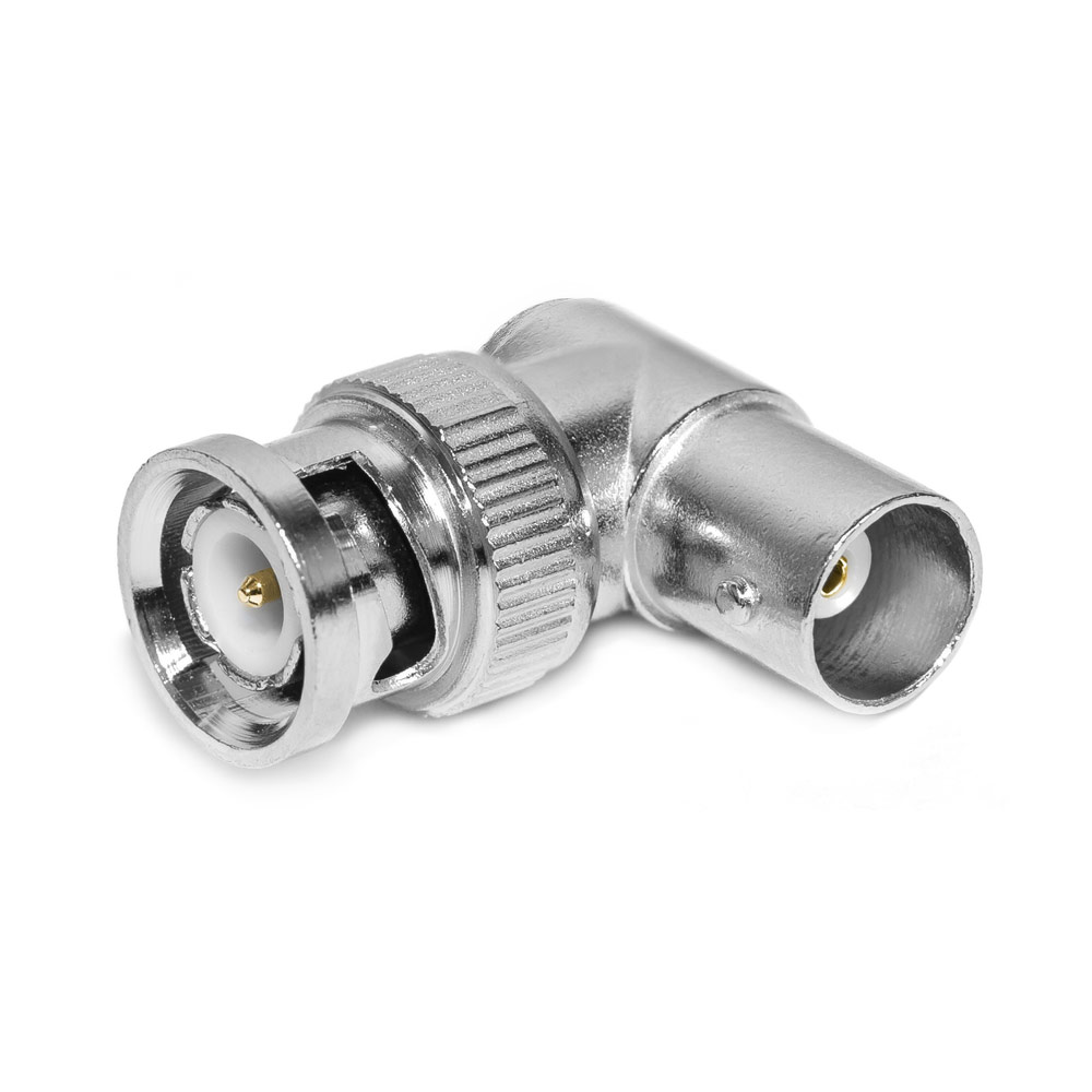 BNC Male Plug to BNC Female Jack Adapter - 90 Degree Tight spaces giving you a problem to connect your BNC cable? Tired of having to move your equipment just to reach in those inchhard to get places?inch Use a BNC Male Plug to BNC Female Jack Angle Adapter to save your time and efforts in your cable setup! Our 90 Degree BNC Adapter gives you the flexibility you'll need without risking of bending your BNC cables! Good to use with CCTV system Connector 1: BNC Male Plug Connector 2: BNC Female Jacks