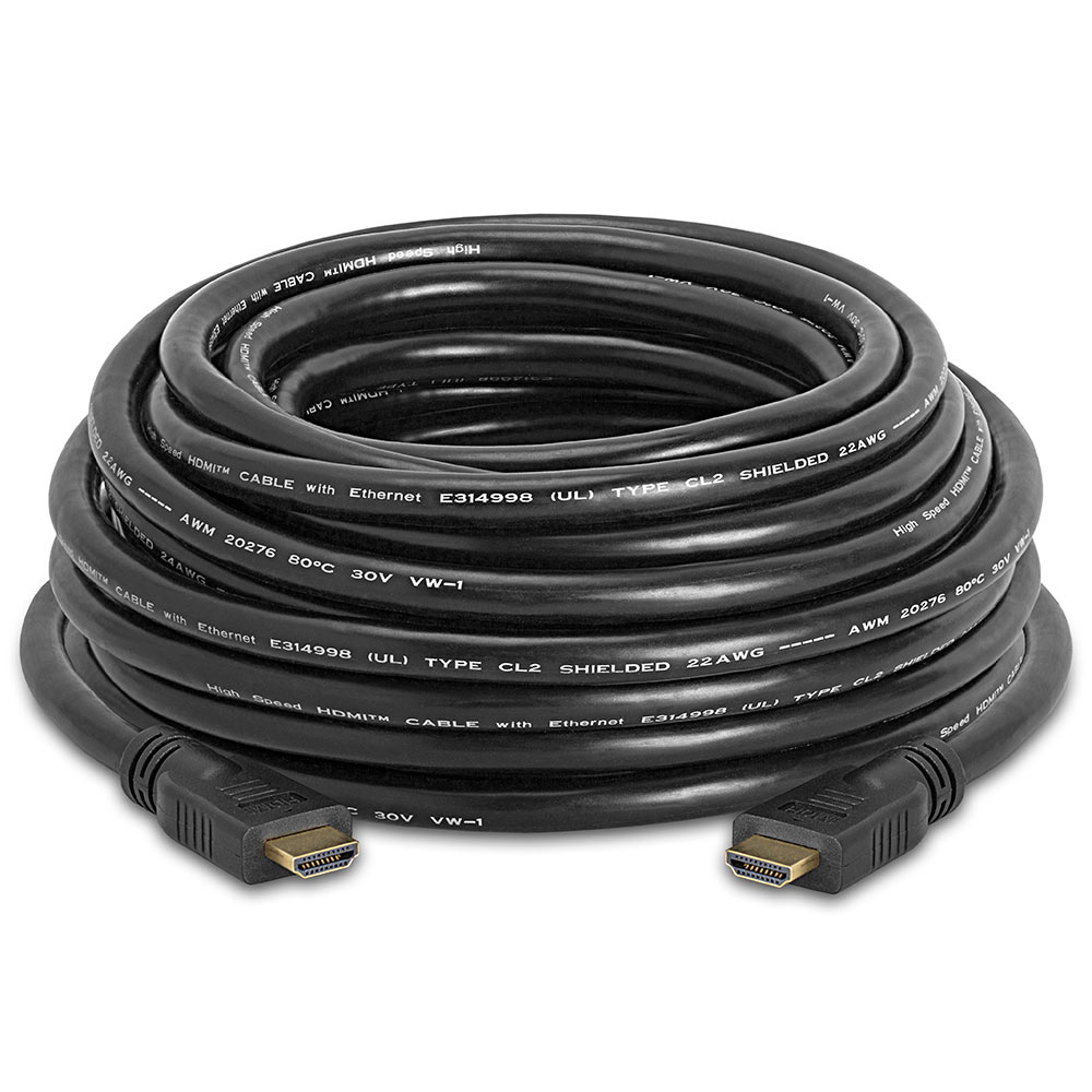 22 AWG High Speed HDMI Cable For In-Wall Installation - 30 Feet By now, almost everyone is familiar with HDMI (high-definition multimedia interface) cables. They’re the somewhat-thick, single cables you probably use - to connect your HDTV to your cable or satellite box, Blu-ray player or audio system. - to connect your computer to your flat-screen monitor. - to connect or any of these devices to a display controller. These days, there are more and more devices which are HDMI-enabled, and need this type of cabling to perform at optimal levels - because it’s essentially loss-free. When you’re ready to install a modern home theater system or wire your office, but you don’t want long runs of cable which will constantly be tripped over, broken or just look terrible - it’s time to put the wiring inside your walls. That’s when you need Cmple’s 22 gauge high speed HDMI 30-foot cable. (We haven’t mentioned the possibility that you already have older cabling installed - but chances are that if you do, it’s probably no longer suitable for today’s high-definition TVs, audio and gaming systems, or HD computer monitors. The Cmple HDMI cable is perfect for those situations as well.) This cable will work with virtually any electronic device and in virtually any situation. For HDTV, for example, it supports both high-def digital video resolutions of 480i, 480p, 720p, 1080i and 1080p, and the high refresh rates being used these days, from 120/240Hz or even higher. For your brand-spanking-new sound system, the Cmple HDMI cable can work with all of the new digital audio high-res highs such as DTS Master Audio and Dolby Digital TrueHD. For computer monitors or gaming, screen resolutions all the way up to 1920x1200 are supported. And the piracy protection highs of newer Blu-ray and HD players aren’t a problem either, since the cabling is HDCP compliant. Cmple’s high speed HDMI cable is CL2 rated, so you can safely install it in walls (or anywhere else with the exception of plenums) knowing it is not only safe, but won’t put you at risk of failed building inspections or insurance claim denials. It’s also RoHS compliant (ensuring there are no dangerous substances inside), CEC compliant (energy-efficient) and comes complete with interference-resistant triple-shielding and anti-corrosion gold-plated connectors at each end. This cable ships is available in several other length as well. 30 feet, 35 feet, 45 feet, 50 feet, 75 feet, 100 feet The rundown on the Cmple 30-foot high speed 22 AWG HDMI cable: Supports HD digital video up to 1080p (maximum performance may vary based on equipment) Supports modern high-res digital audio highs including Dolby Digital TrueHD and DTS Master Audio Supports high refresh rate displays of 120Hz, 240hz and higher Clean, corrosion-resistant gold-plated connectors Interference-resistant (both electromagnetic and radio frequency) thanks to triple-shielding RoHS, HDCP and CEC compliant CL2 rated for in-wall installation Length: 30 Feet Color: Black Long runs of HDMI cable can often be problematic but this 30-foot in-wall cabling is the answer. Sturdy, high-quality, and capable of handling even today’s high-resolution, high definition audio and video with no losses, Cmple’s high speed HDMI cable can be counted on for many years of reliable service. Just remember to test all cables before putting them inside a wall; better safe than sorry!