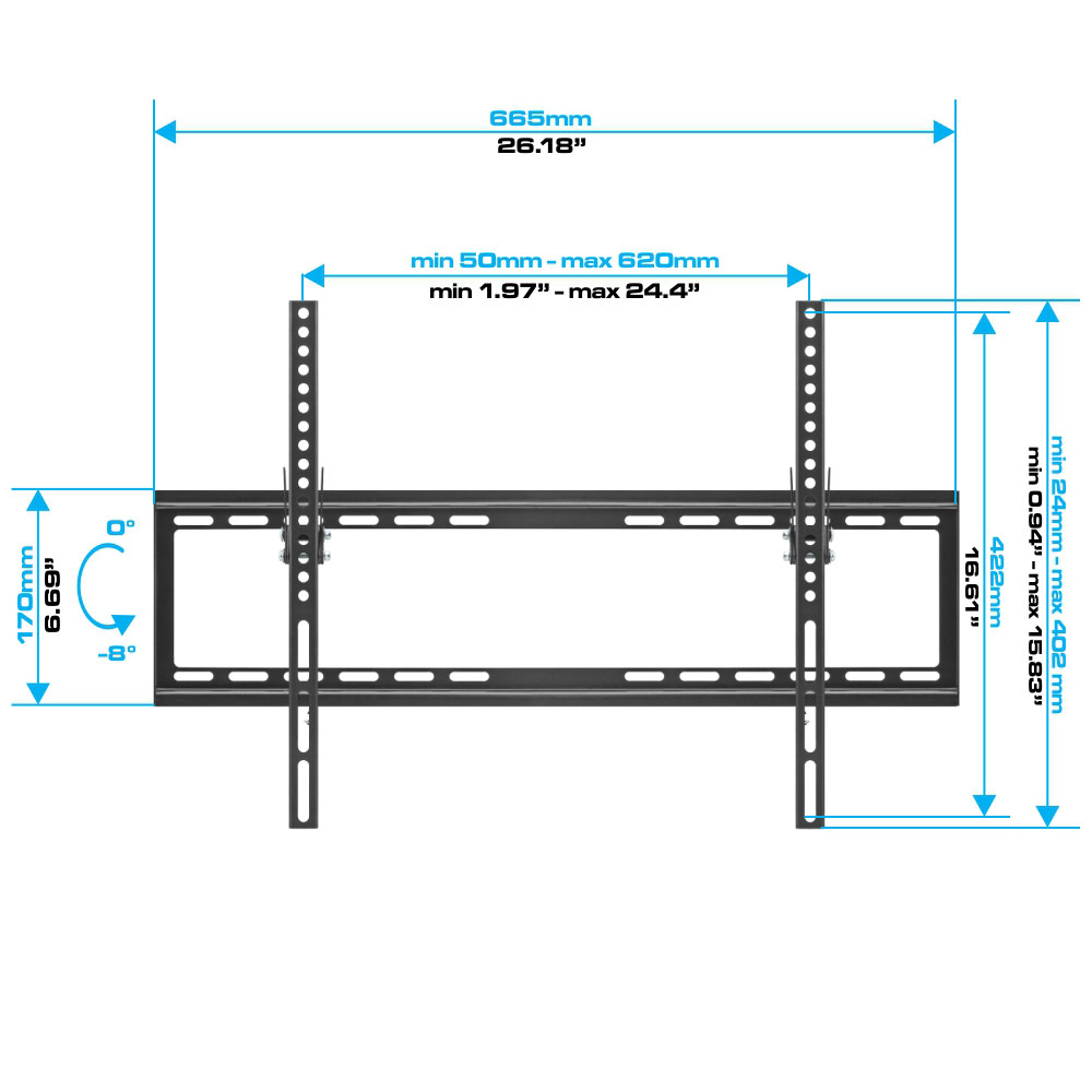 Low Profile, Ultra Slim, Heavy Duty Tilting Wall Mount For 37-70 Inch Flat Panel TVs You have a brand new flat screen television - and it’s a pretty big one; not a monster, but large enough that you need two people to handle it comfortably. The question then becomes: how in the world do you get it onto the wall? You could call a professional home theater installation company, but that will just add hundreds of dollars to the higher-than-you-anticipated price of the new TV. You could get one of those huge, expensive wall mounts they had at the store, but then the slim lines and modern appearance of your flat panel television will probably be ruined. What is VESA? Or - you could do the smart thing and buy a reasonably-priced Cmple ultra-slim tilting wall mount. It’s specifically made for LED, LCD, 3D LED and even older plasma TVs from 37 all the way up to 70 inches; it’s also strong, built to hold monitors as heavy as 77 pounds, so just about any flat screen will be absolutely no problem. What’s even better is that the mount attaches to the back of the monitor and is incredibly thin, leaving only one inch of space (just enough for the cables) between the TV and the wall. When people look at the screen, that’s exactly what they’ll see - not an ugly metal monstrosity overshadowing the television. Hanging the mount is easier than you would imagine. Not only is it light and easy to secure, but there’s even a built-in bubble level so you can make sure that your TV will be hung absolutely straight. And your monitor will fit; the universal hole pattern on the mounting plate which attaches to the monitor is fully VESA-compliant for 200 x 200, 400 x 200, 300 x 300, 400 x 400 and 600 x 400. The open architecture of the mount is designed to allow adequate ventilation for the television, while providing easy access for any cable management that may be necessary. Once your television is secure, the Cmple wall mount makes the TV a joy to watch because it tilts up or down through a 15 degree range, letting you adjust the screen for a perfect viewing angle. As long as you don’t exceed the maximum size and weight restrictions for the mount, you’ll be good to go for years. There’s no need to hire professional installers or get one of those enormous, ugly mounts for your beautiful new television. The easy-to-hang Cmple low profile tilting wall mount will do the job faster and better than they will, at an amazingly-low price. The specs for the Cmple low profile, ultra slim heavy-duty tilting wall mount for 37-70 inch flat panel TVs: -8 degrees - +0 degrees up and down tilt Vesa compliant: 200 x 200, 400 x 200, 300 x 300, 400 x 400, 600 x 400 Support flat panel TV up to 77 lb / 35 kg Distance from TV to wall: 20.5 mm Open architecture provides superior ventilation and easy access for cable management Color: Black You Will Receive 1 TV Bracket There’s no need to hire professional installers or get one of those enormous, ugly mounts for your beautiful new television. The easy-to-hang Cmple low profile tilting wall mount will do the job faster and better than they will, at an amazingly-low price.