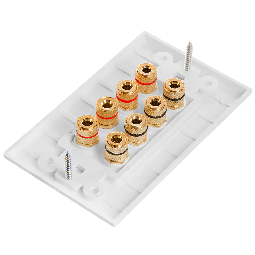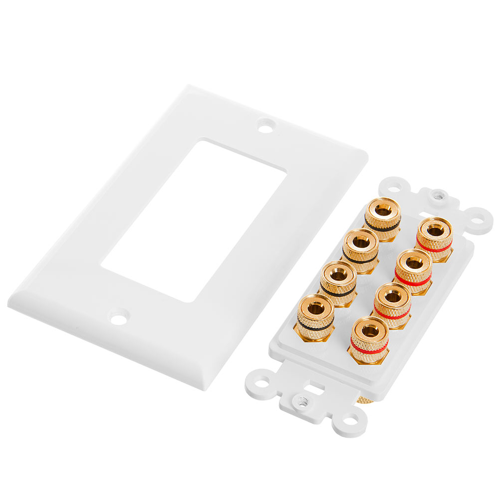 Speaker Wall Plate With Banana Binding Posts - Four Speakers