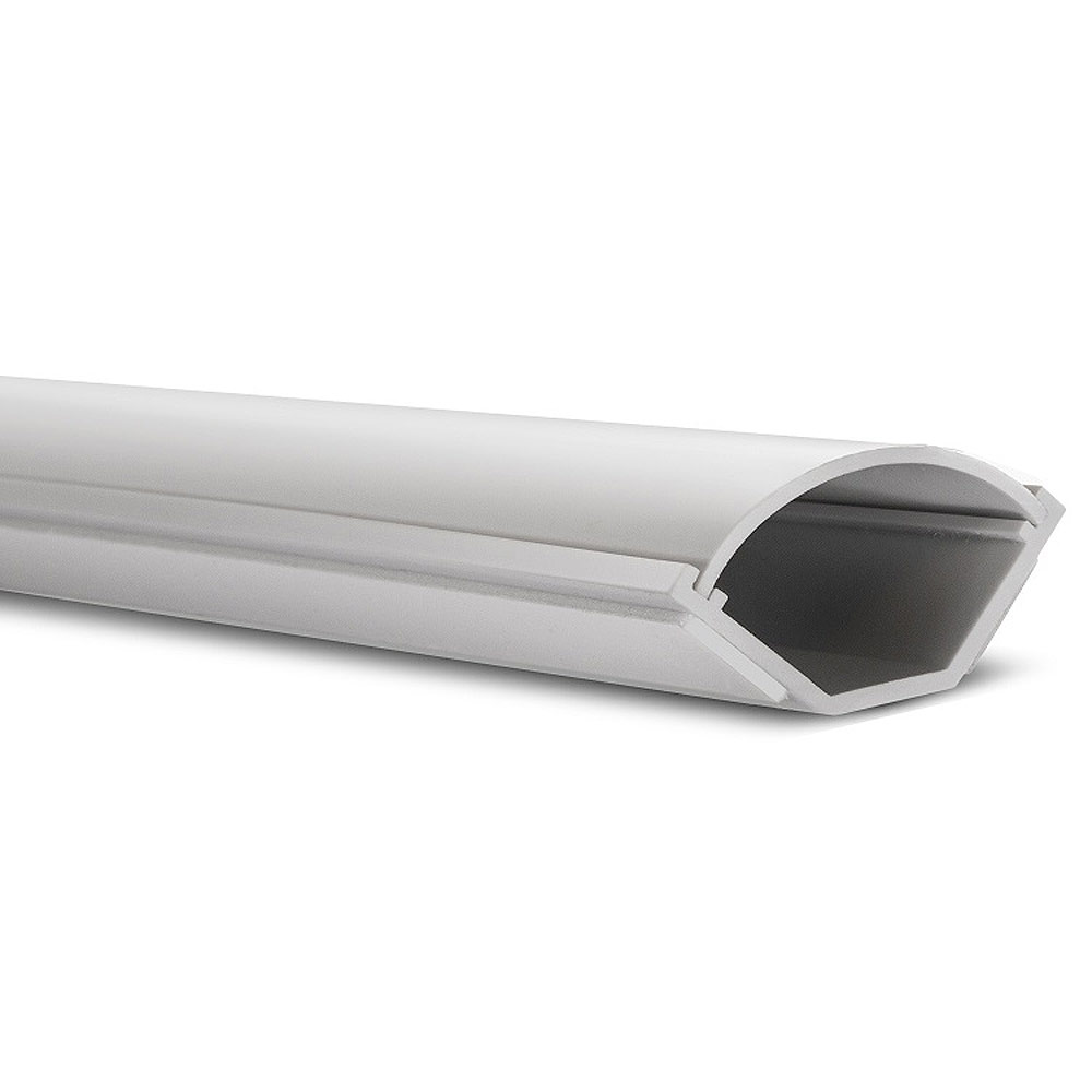 Wire Trak Corner Duct Raceway 2-3/16inch - 6ft FE0201150CD-W - White Triangular corner raceway blends into wall/ceiling junctions to provide clean, finished appearance. Parts made from a UL VO-94 compliant PVC. Comes with pre-applied foam tape for speedy installation.